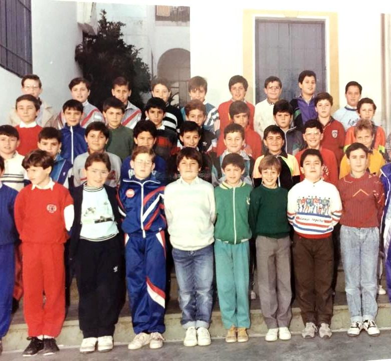 Esta típica fotografía de grupo escolar nos remite en el tiempo a los años centrales de la década de 1980, y nos sitúa geográficamente en el patio del colegio Jesús