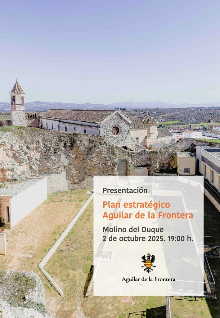 Este jueves, 2 de octubre, nuestra localidad dará un paso decisivo hacia el futuro con la presentación del Plan Estratégico de Cuidad: Aguilar de la Frontera 2035″, un documento que constituye la hoja de ruta para orientar, activar y articular el desarrollo sostenible, inclusivo y competitivo del municipio durante la próxima década.