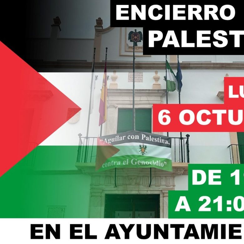 El próximo lunes, 6 de octubre, de 7 a 9 de la tarde, nos concentraremos en el Ayuntamiento para alzar la voz contra el genocidio y en defensa del pueblo