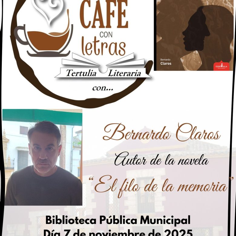 No te lo pierdas, echaremos un buen rato de tertulia en compañía de Bernardo Claros para hablar de su última novela “El filo de la memoria” compartiendo un café con