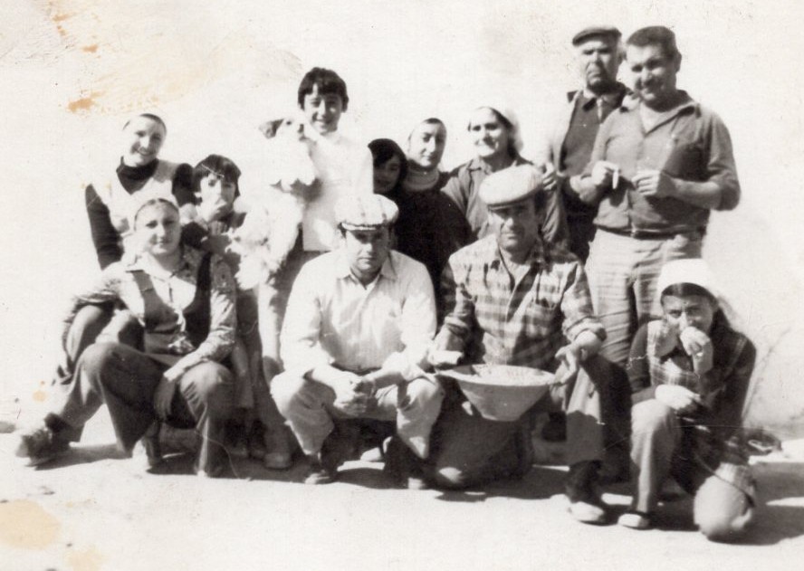 Esta fotografía nos remite a aquellos tiempos y a la vida de los jornaleros en los cortijos del Término de Aguilar durante las “varas” de las aceitunas. Concretamente se tomó en los años setenta en el cortijo de Boza Hierro,