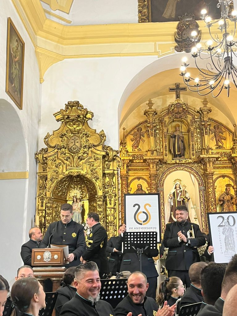 La Parroquia del Carmen, un nutrido público, y una represenración del Equipo de Gobierno, arroparon anoche los 20 años de música de la Agrupación Musical de Santa Cecilia.