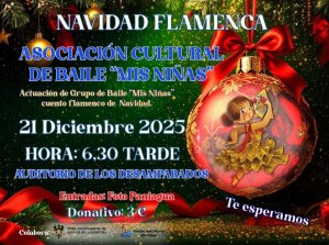 El grupo de baile “Mis Niñas” celebra su gala, Navidad Flamenca 2025, el próximo 21 de diciembre a las 6,30 de la tarde en el Auditorio Sebastián Valero. Retirada de