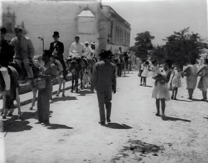 Corría el mes de agosto de 1960 cuando se tomó esta curiosa instantánea, en la que quedó plasmada la imagen de una singular cabalgata de borricos montados por personajes disfrazados,